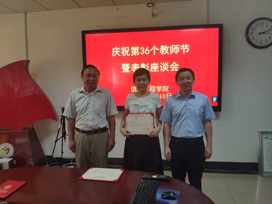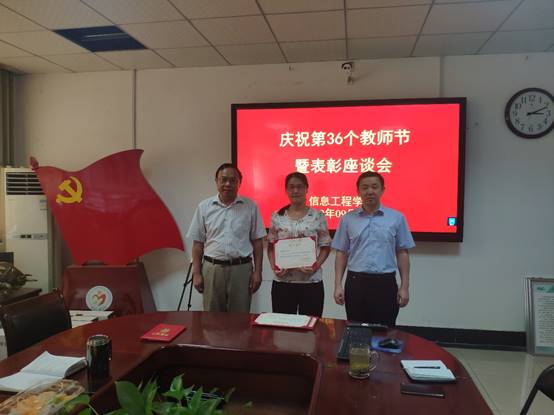 栽下满园桃李,留得万世芬芳。为庆祝第36个教师节,9月10日下午,信息工程学院在0#502召开庆祝第36个教师节暨表彰座谈会。学院党政领导班子成员、优秀教师、部分教师代表及学生代表参加会议,学院党委书记郎瑞红主持会议。