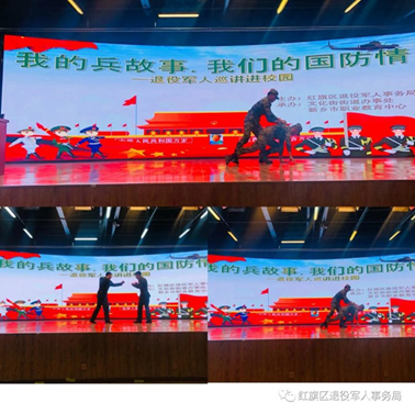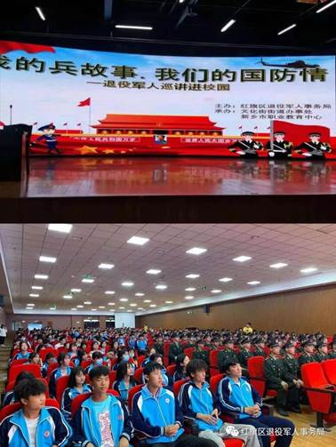 为庆贺建党百年、建军94周年,深入学习贯彻党的十九届五中全会精神,5月21日,由红旗区退役军人事务局主办的“我的兵故事我们的国防情”退役军人巡讲进校园活动在新乡市职业中心正式启动。活动旨在充分利用我区优秀退役军人资源深入校园开展国防教育、党史军史宣讲。我院退役军人靳中亚参加本次活动。