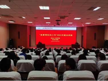 为加强对学生就业指导,培养大学生的核心就业能力,树立正确的就业观,10月29日下午,我院与机电学院在新图书馆一楼学术报告厅举办“老夏带你找工作”2021年就业指导讲座。招生就业处副处长杨永生,我院党委书记郎瑞红,副院长高国红,辅导员袁家祺以及我院与机电学院300余名学生参加了讲座。