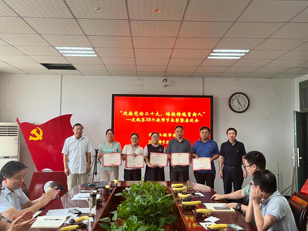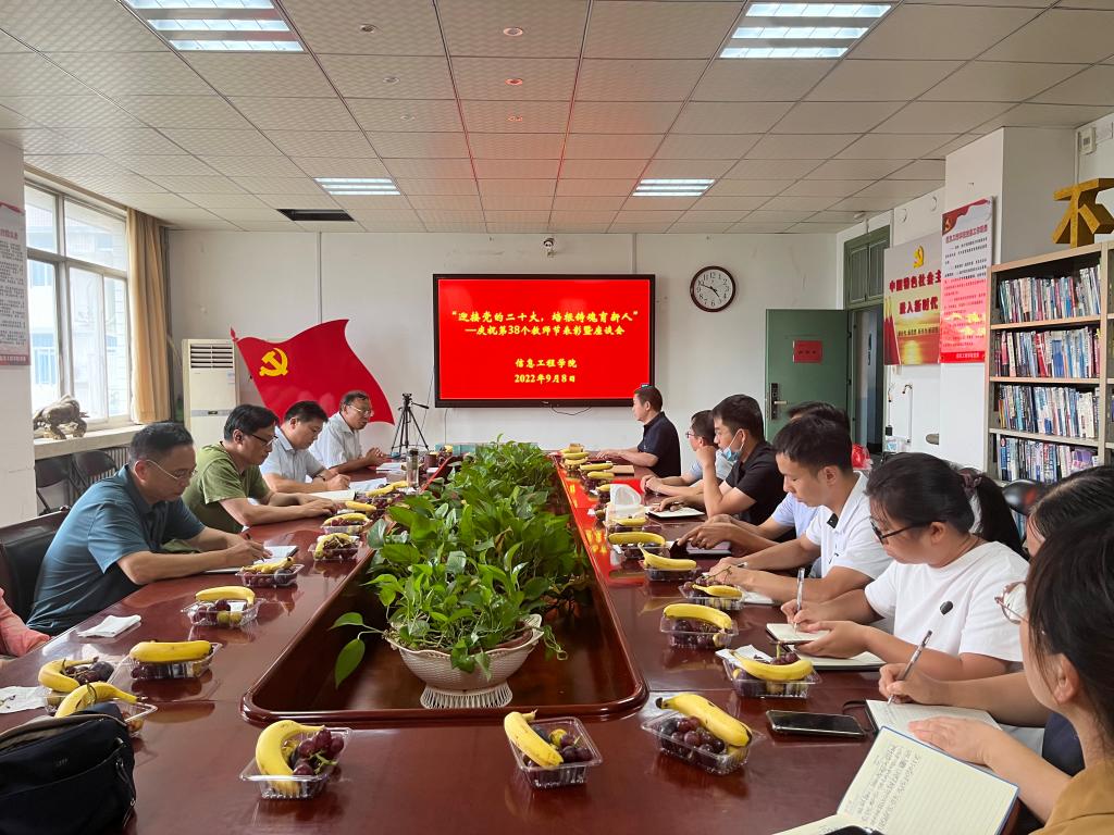 为庆祝第38个教师节,迎接党的二十大胜利召开,9月8日,信息工程学院在0#502召开“迎接党的二十大,培根铸魂育新人”---庆祝第38个教师节表彰暨座谈会。学院党政领导班子成员、优秀教师及新入职教师参加会议,学院党委书记郎瑞红主持会议。
