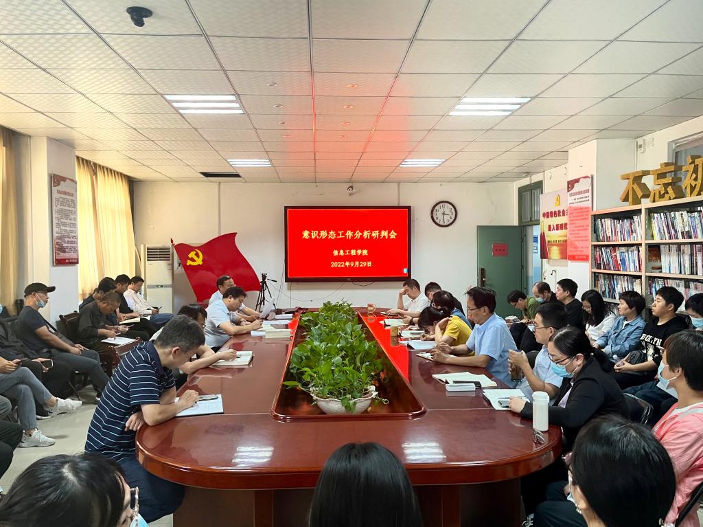 9月29日下午,信息工程学院在0#502会议室召开意识形态工作分析研判会。学院党政领导班子、党委委员、全体教工参加会议。会议由学院党委书记郎瑞红主持。