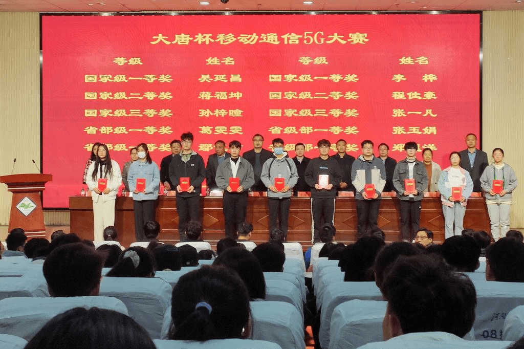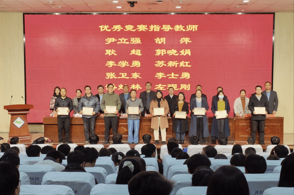 院长李国厚讲话,他详细介绍了信息工程学院过去一年学科竞赛工作的开展情况和优秀成果,他指出,学院的发展需要大家共同努力,希望老师们在后续的竞赛组织指导中不断总结经验,带领同学们脚踏实地,踔厉奋发,为学校的信息技术学科建设发展贡献自己的力量。张建设宣读获奖名单,与会领导为获奖学生进行颁奖表彰并合影留念。张建设作总结发言,他希望获奖同学及老师戒骄戒躁,借此机会在学院掀起学科竞赛的浪潮,形成“人人重视、人人参与”的良好氛围,发扬好学院“崇德励能,信致天下”的院训精神。
