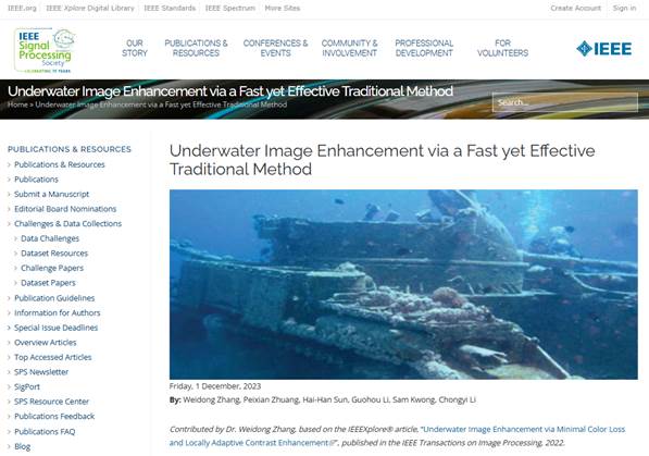 自2022年6月在IEEE TIP发表至今,该论文一直是IEEE TIP Popular Article,被IEEE Signal Processing Society (SPS)评为2023年IEEE TIP在IEEE Xplore上下载次数最多的25篇文章之一,同时也是ESI高被引论文、ESI热点论文。基于该成果的学术价值和受欢迎程度,IEEE SPS邀请张卫东博士课题组发布SPS博客。
