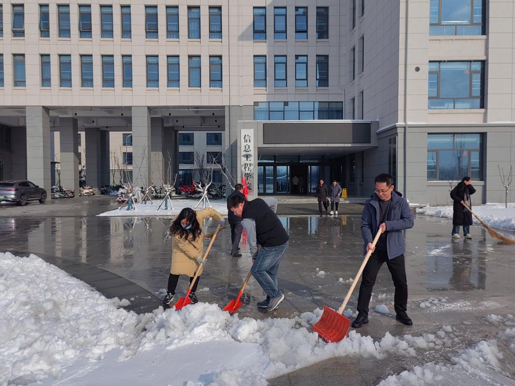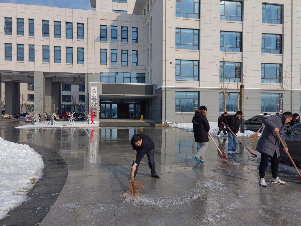 扫雪暖人心,助力平安行。活动现场,大家干劲十足,冒着寒风,手拿铁锹、推板、扫帚等工具,有组织、有秩序地扫积雪、铲坚冰。路过的学生被现场氛围感染,主动加入志愿服务队伍。师生齐心协力、配合默契,为学院师生上课出行开辟了一条安全的“绿色通道”。学院党委把学生安危放在心上,把安全责任扛在肩上,以实际行动让学院师生在刺骨的寒冬里,感受到温暖与关怀。