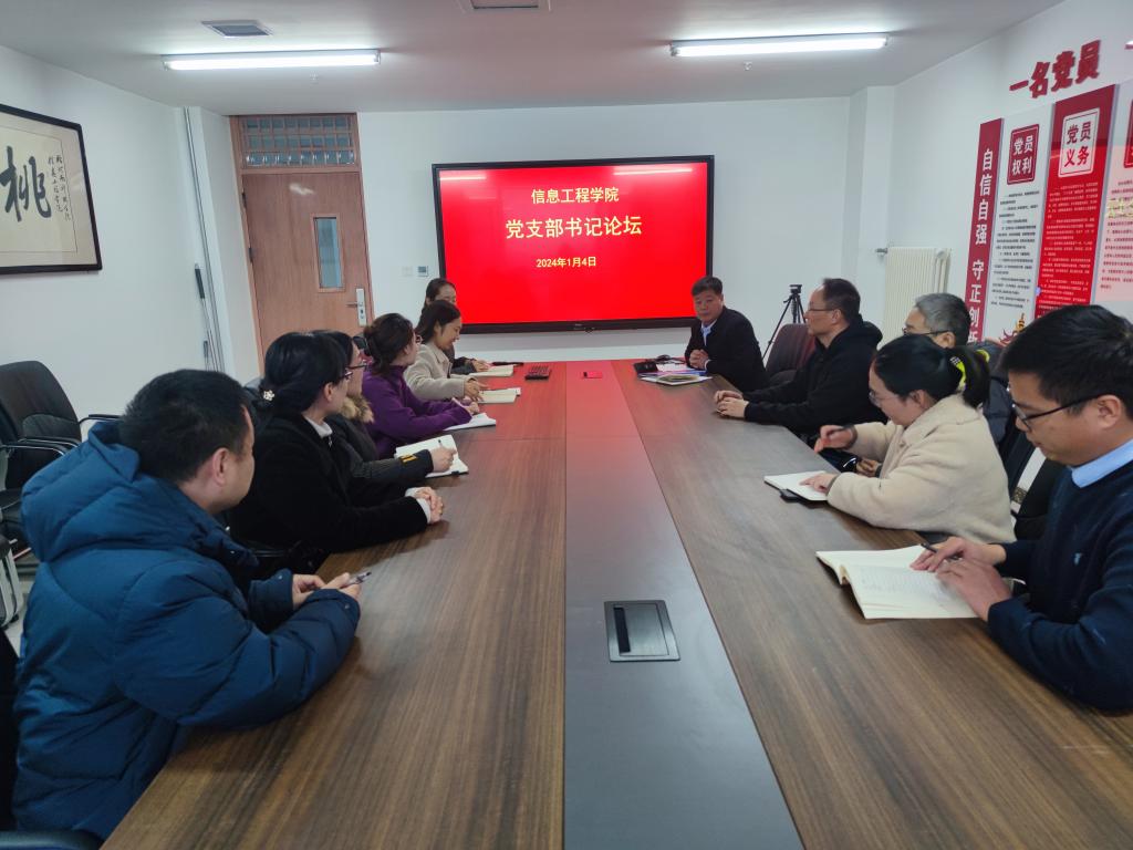 为进一步提升党建工作质量,发挥党建引领作用,夯实基层党组织建设,推进党支部工作提质增效,1月4日,信息工程学院在弘文楼B414会议室召开党支部书记论坛,学院党委书记李印、党委副书记王明艳,全体党支部书记参加。会议由王明艳主持。