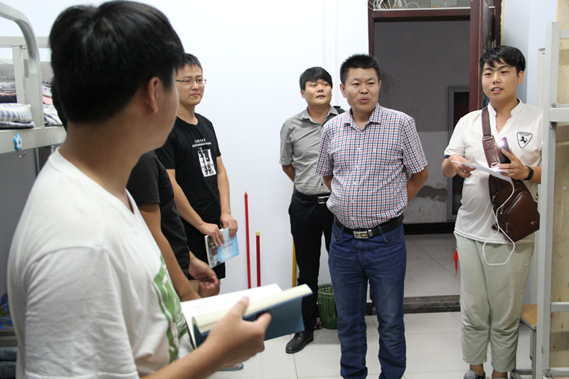 9月10日19:30,化学化工学院党委书记赵亦芳、院长张裕平、党委副书记朱宏、副院长谷永庆以及全体辅导员到新生宿舍走访慰问2018级全体学生。