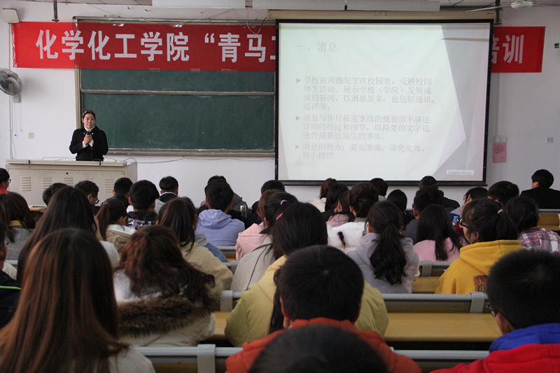 校党委宣传部校报编辑部副主任牛艳芳围绕校园新闻写作展开精彩报告。她详细介绍了校园新闻的基本特点和写作技巧,同时结合具体案例讲解了新闻写作时需要注意的事项。