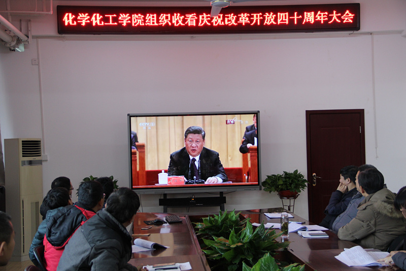 12月18日上午10时,庆祝改革开放40周年大会在人民大会堂隆重举行,化学化工学院党政领导、教师和学生代表60余人在学院会议室集中收看了大会直播。