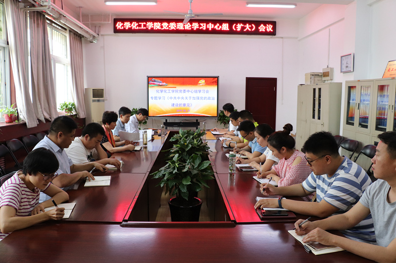 5月24日下午,化学化工学院党委召开理论学习中心组(扩大)会议,专题学习《中共中央关于加强党的政治建设的意见》。学院党政班子成员、党支部书记和科级干部参加了学习会。