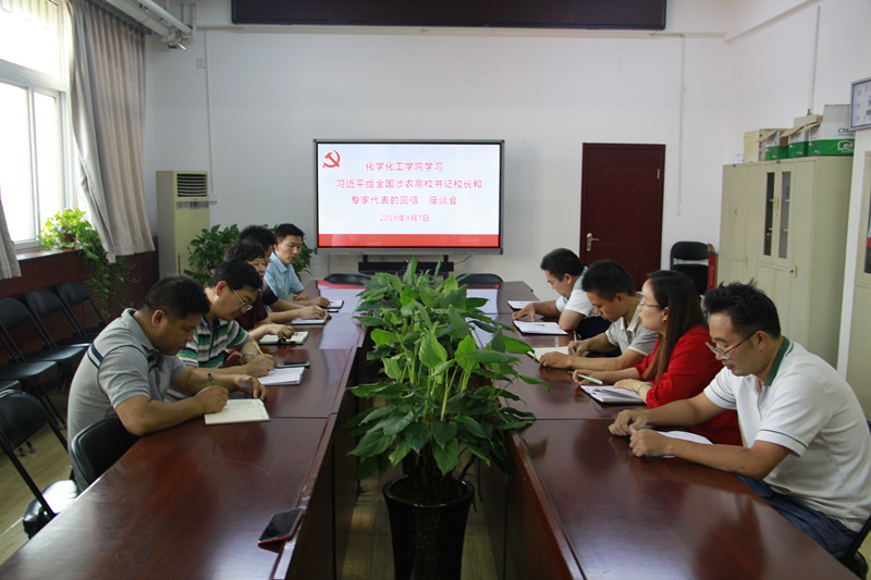 9月7日下午,化学化工学院党委在学院会议室召开学习“习近平给全国涉农高校书记校长和专家代表的回信”精神座谈会。学院党政领导、部分专家教授和教师代表参加了会议。会议由院党委书记赵亦芳主持。