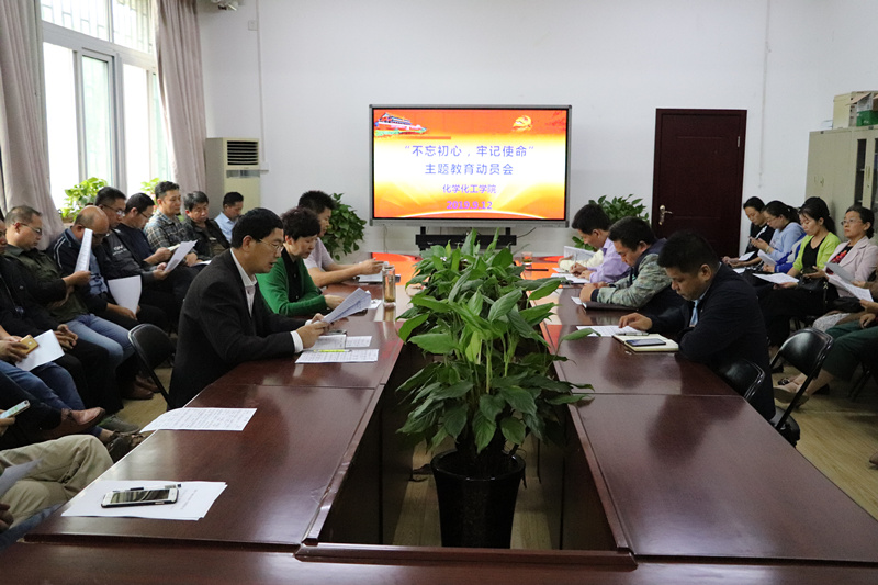 9月12下午,化学化工学院在学院会议室召开“不忘初心、牢记使命”主题教育动员会,学院领导班子和全体党员参加了会议。