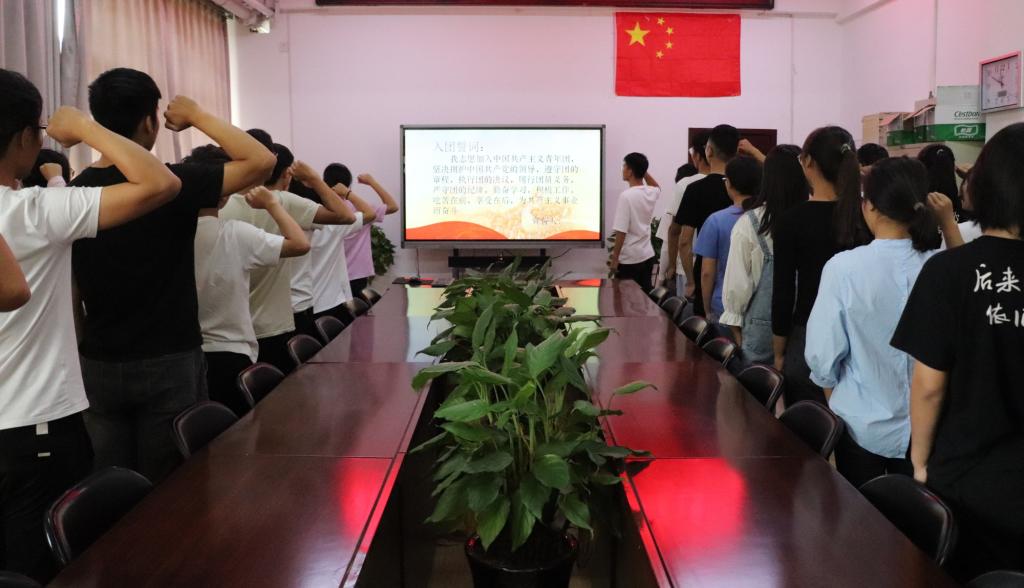 接下来,在团员马俊明的带领下,广大团员面对团旗,高举右手、庄严宣誓。“我志愿加入中国共产主义青年团,坚决拥护中国共产党的领导,遵守党的章程……吃苦在前,享受在后,为共产主义事业而奋斗”。句句铿锵有力,字字掷地有声,展现了广大青年学生与时代主题同心同向,争做新时代青年模范。