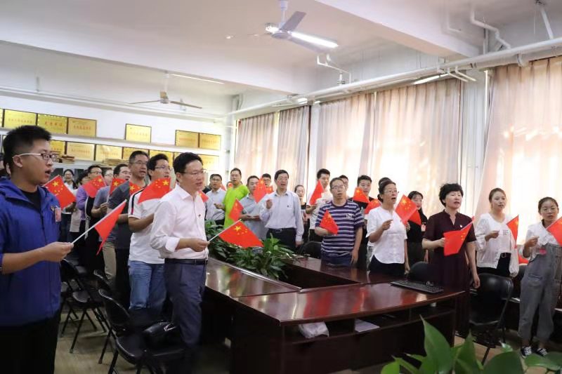 为隆重庆祝新中国成立70周年,激发广大党员的爱国热情和干事创业的激情,10月1日上午9点,化学化工学院在学院会议室举行“诵读经典、共唱红歌”庆祝新中国成立70周年主题党日活动。院党委委员、支部书记和师生党员参加了主题党日活动。