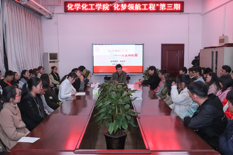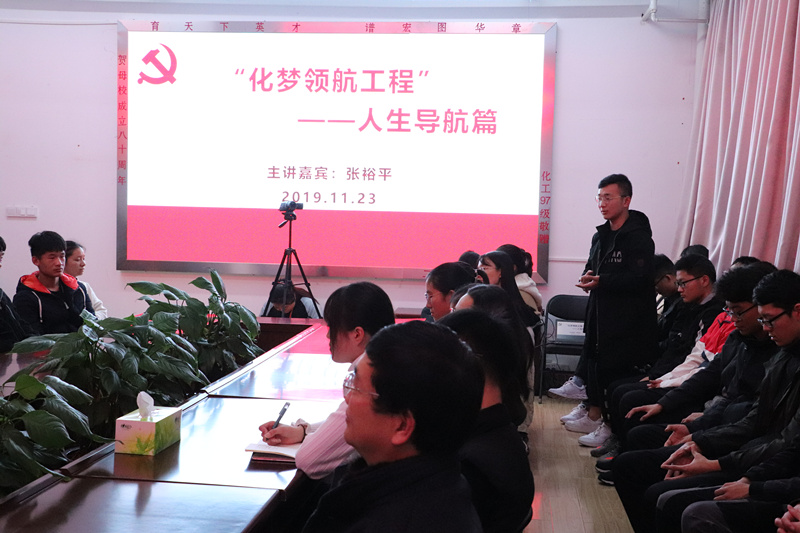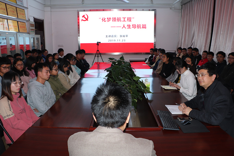 为加强大学生思想政治教育,引导学生健康成长成才,11月23日晚,化学化工学院在学院会议室举行“化梦领航工程”之人生导航篇师生交流会。主讲嘉宾为化学化工学院院长张裕平,学院60余人学生参加了交流会。