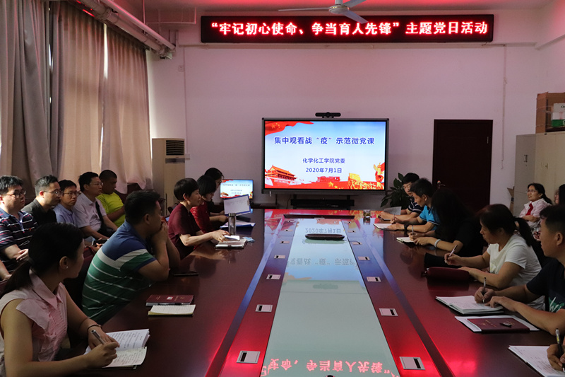 为庆祝中国共产党成立99周年,7月1日上午,化学化工学院党委在学院会议室举行“牢记初心使命,争当育人先锋”主题党日活动。学院党委委员、支部书记和教师党员参加了活动。主题党日活动由院党委书记赵亦芳主持。