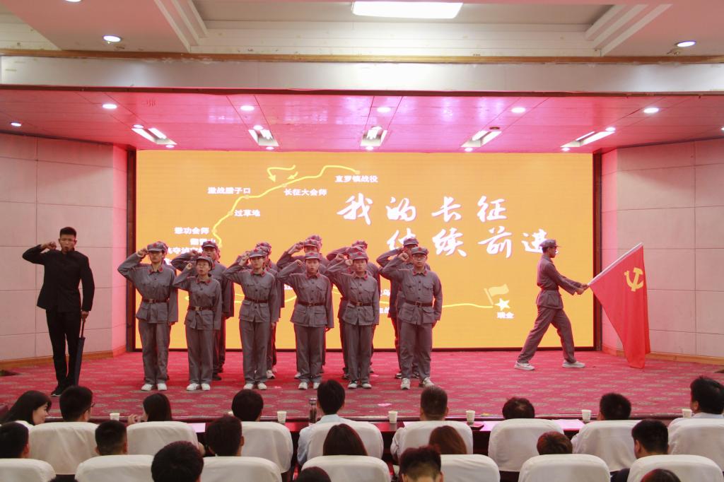 本次学团工作表彰会,以庆祝建党一百周年为红线,音诗画朗诵《永不消逝的声音》、情景剧《风雪长征路》等节目,通过短视频播放和PPT讲解,讲述了中国共产党从石库门到天安门、从兴业路到复兴路,从“小小红船”到“巍巍巨轮”、从开天辟地到百年风华的艰难历程。回顾了全体学生在春季运动会、大学生社会实践、学风建设中取得的显著成绩。
