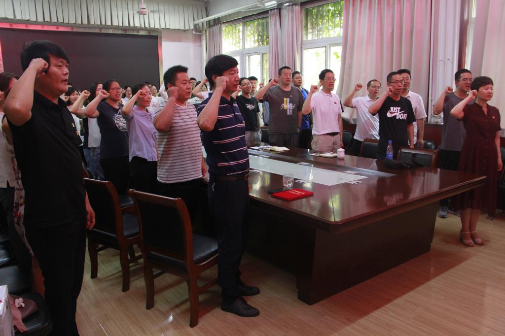 在赵亦芳的带领下,举行了重温入党誓词仪式。全体师生党员面对鲜艳的党旗,举起右拳,庄严宣誓,表达为共产主义事业奋斗终身的信心和决心。