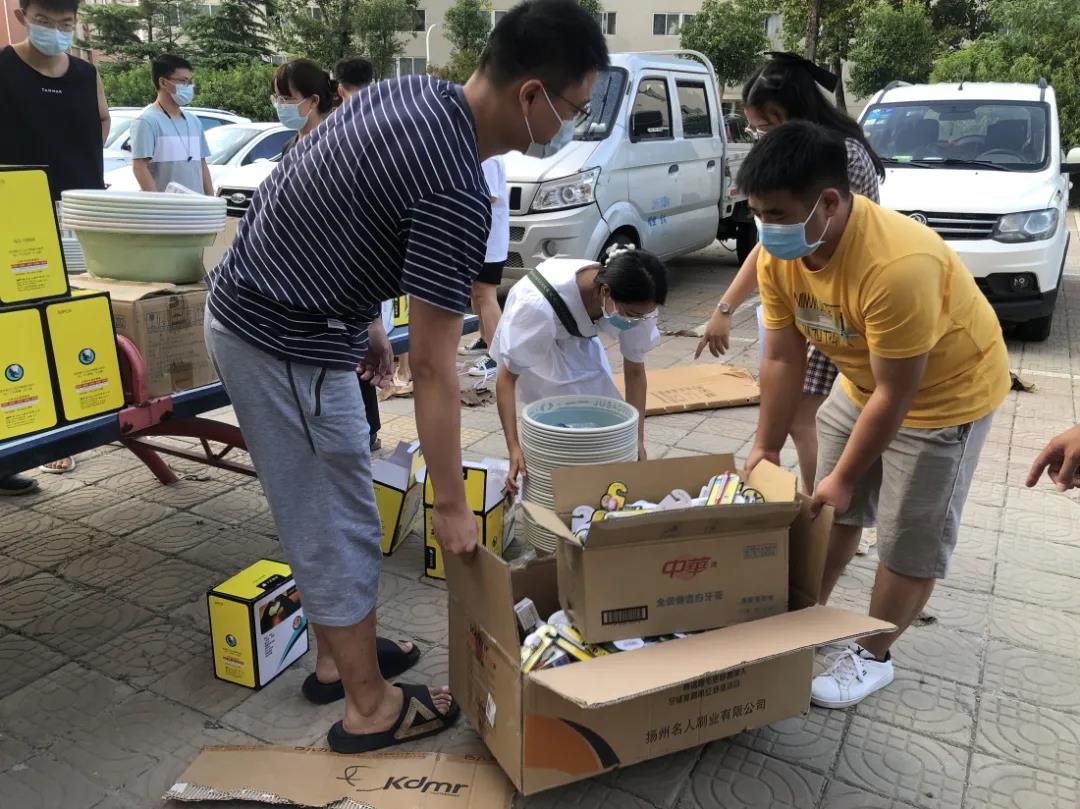 党员朱芳坤老师多方协调,积极沟通,筹措善款,为受灾群众购置急需的生活用品。广大党员干部、师生志愿者们齐心协力,为受灾群众分发纯棉毛巾500条、脸盆500个、牙膏500支、牙刷700余支,为受灾群众生活提供了便利、送去了温暖。