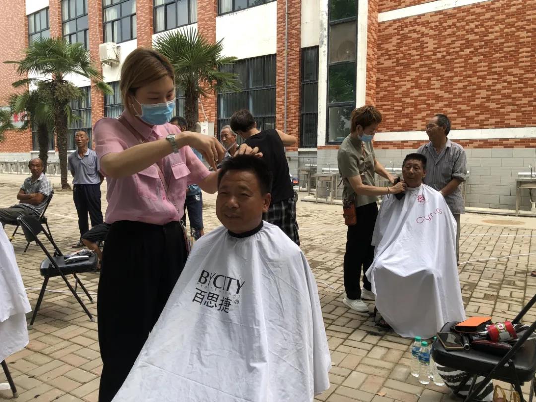 同时,学院党委积极联系红旗区艺昕美发沙龙,邀请10名爱心理发师来校,为受灾群众义务提供理发服务,在人手不够的情况下,学生志愿者也积极参与为安置群众理发、刮胡子。师生志愿者们真真切切为受灾群众着想,扎扎实实为受灾群众提供便利,他们的努力付出得到了大家的认可。