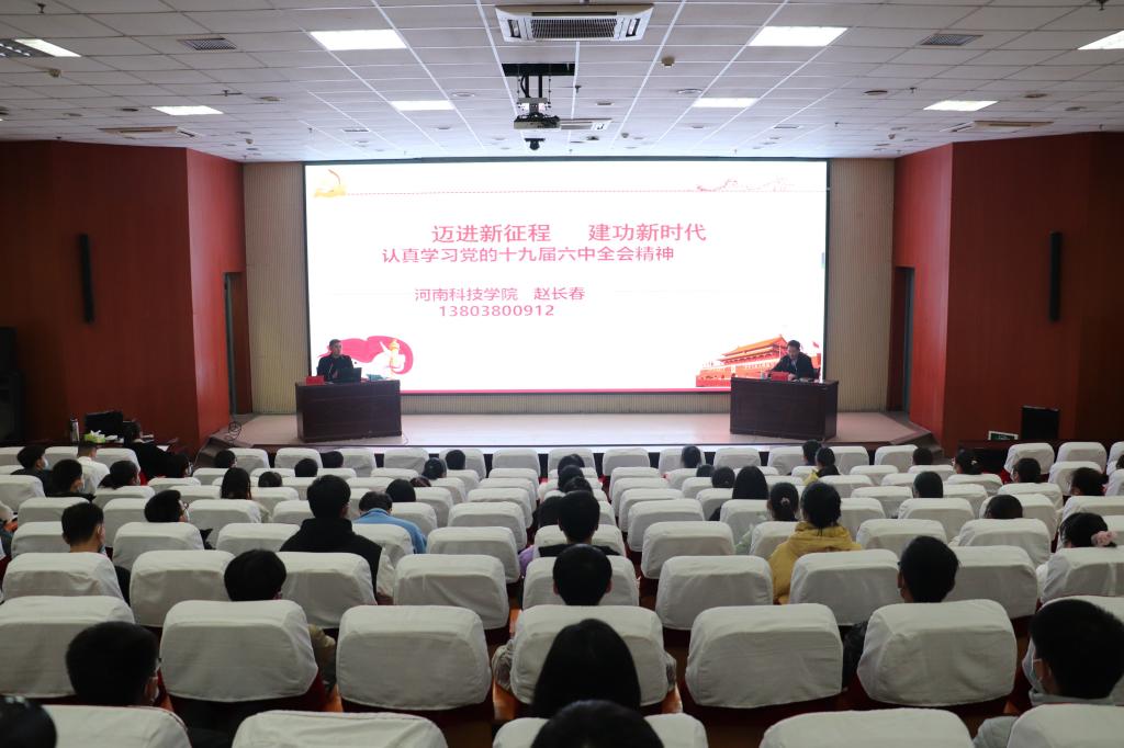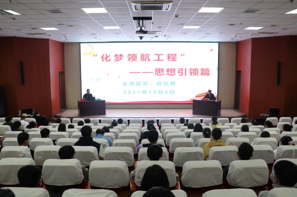 为深入学习党的十九届六中全会精神,推进党史学习教育走深走实,12月2日下午,化学化工学院在新图书馆一楼报告厅举行“化梦领航工程”第十一期理论宣讲报告会。河南省委、新乡市委理论宣讲团成员,我校党校副校长、组织部副部长赵长春作宣讲报告。学院辅导员、学生党员和学生代表参加了会议。会议由院党委副书记朱宏主持。