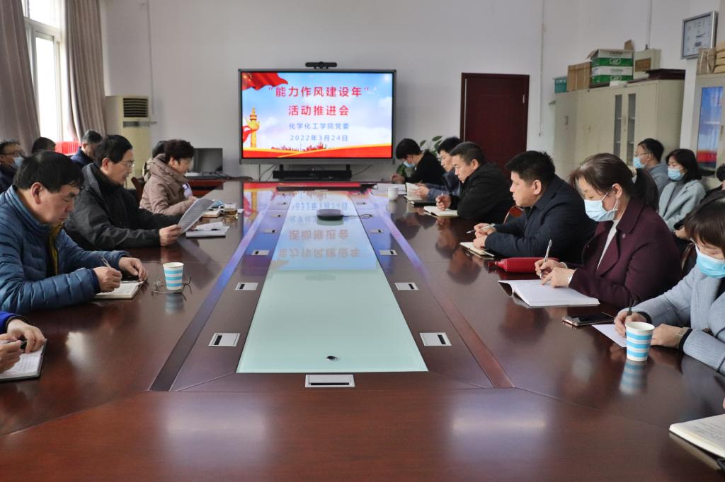 3月24日下午,化学化工学院在学院会议室召开“能力作风建设年”活动推进会,学院领导班子、支部书记、科级干部、教研室主任和辅导员参加了会议,会议由院党委书记赵亦芳主持。