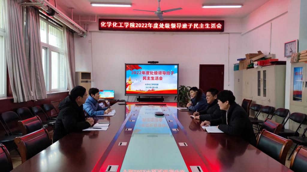 2月14日,化学化工学院在学院会议室召开2022年度处级干部民主生活会,学院全体处级干部参加了会议。会议由院党委书记赵亦芳主持。