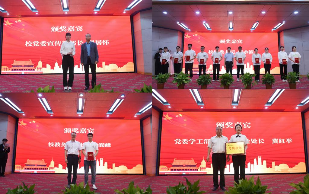 颁奖过程穿插了学生自编自导的舞台剧《情景演绎百年,红歌传颂党恩》、舞蹈《我的未来式》、歌曲《奔跑》三个节目。会后,与会领导与受表彰的先进集体和先进个人进行了合影留念。