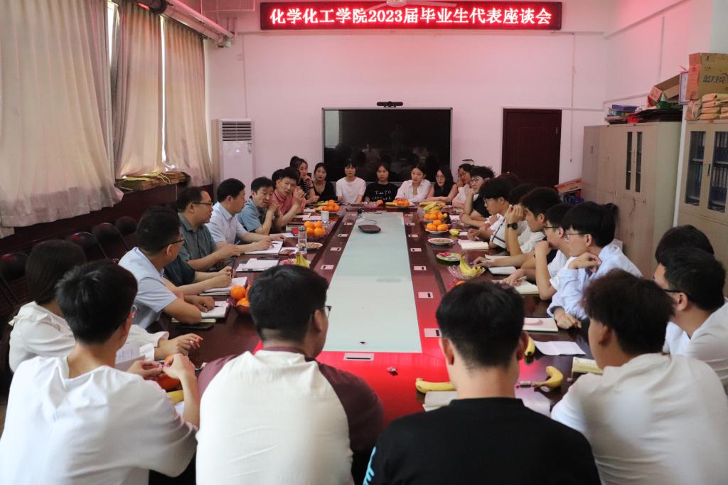 6月8日上午,化学化工学院在会议室召开2023届毕业生代表座谈会。学院党政领导,教师代表,2023届毕业生代表参加了座谈会。