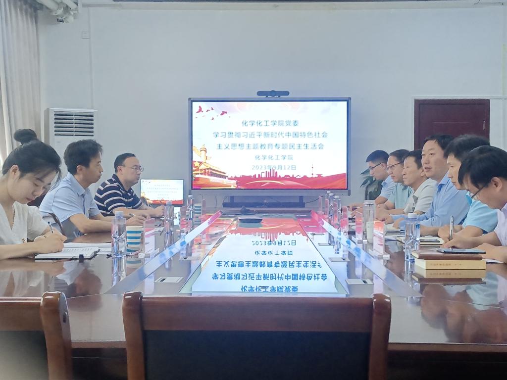 9月12日,化学化工学院在实验楼C105会议室召开学习贯彻习近平新时代中国特色社会主义思想主题教育专题民主生活会,会议由学院党委书记孙震寰主持。学校主题教育专题民主生活会第五督导组到会指导。