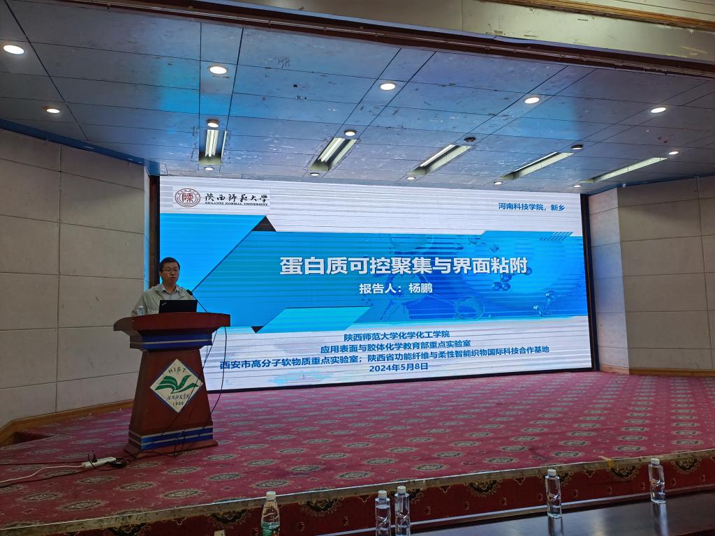 5月9日上午,国家杰出青年基金获得者、陕西师范大学杨鹏教授在图教201报告厅以“蛋白质可控聚集与界面粘附”为题,为我院师生做了一场精彩的学术报告,学院150余位师生代表参加了报告会。会议由学院负责人主持。