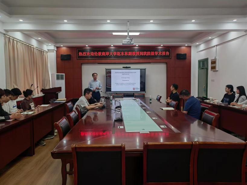 报告会上,赵东林博士首先介绍了在石油管道传输中多相流的特征以及存在的问题,然后分享了他们课题组多年来在多相流检测、电场对流体的影响、微泡制备等方面的研究成果。学术交流环节,赵东林博士和与会师生就多相流的学术问题进行了深入交流,介绍了英国大学教育、如何申请出国留学和申请英国博士等。