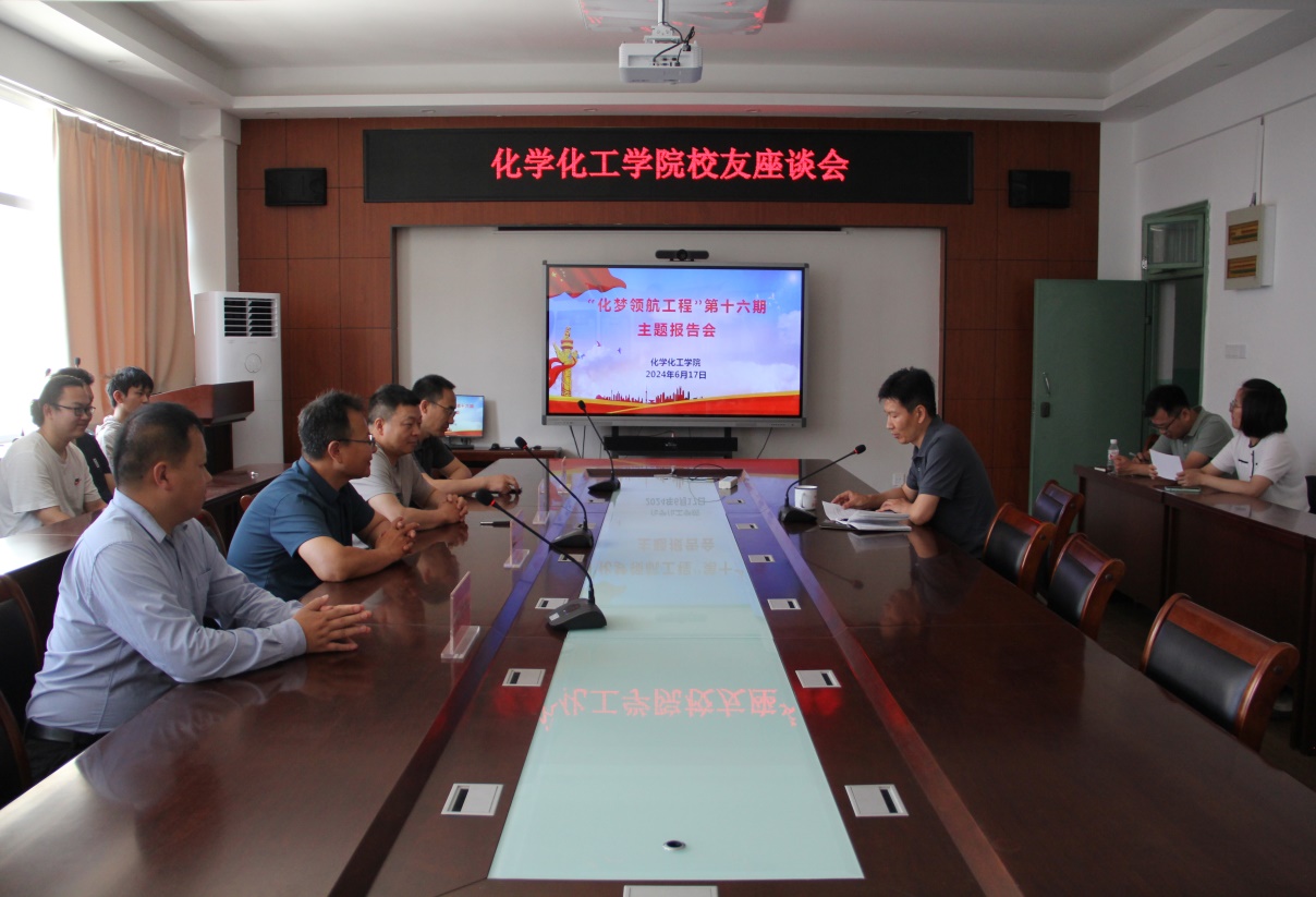 6月17日上午,化学化工学院举行“化梦领航工程”第十六期主题报告会。学院邀请优秀校友王军鹏、赵子阳、孙英豪、刘大旺等回学院开展座谈会。本次报告会由学院党委副书记谷永庆主持。