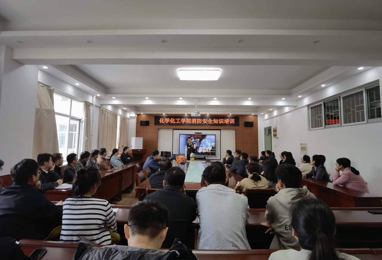 为扎实加强学院师生消防安全知识,筑牢消防安全防线,提升补救初起火灾和应急逃生基本技能,10月24日下午,化学化工学院邀请河南省消防协会杜通教员在D308会议室举行2024年下半年消防安全知识专题培训会,学院教职工和研究生80余人参加了此次培训,培训会由学院副院长杨理主持。
