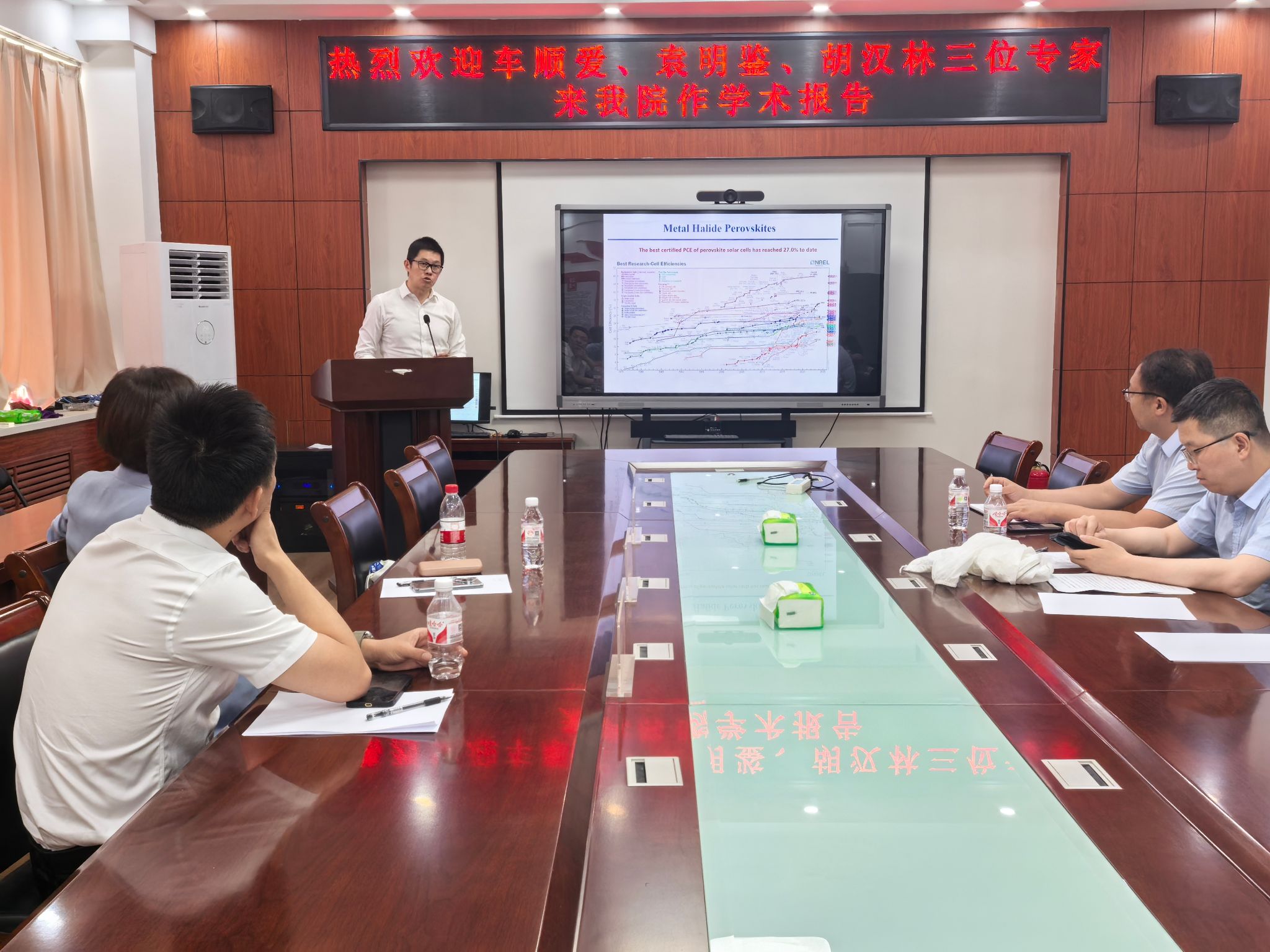 车顺爱教授以《手性介观结构无机材料的自旋极化与手性各向异性》为题,系统地介绍了手性介观结构无机材料的独特物理化学性质,提出了手性介观结构材料自旋极化催化/不对称催化原理。袁明鉴教授在《有机—无机杂化半导体光电器件》报告中深入介绍了光电转换材料与器件的基础研究和前沿探索,低维钙钛矿因其优异的稳定性和丰富的化学可调性在高效光电转换材料的开发与器件构筑中的应用。胡汉林副研究员围绕《打印薄膜光伏器件与产业化》展开分享,将围绕维度调节、界面钝化和叠层应用三大核心策略,探讨如何优化打印工艺以提升器件性能。三位专家的精彩报告引发了在场师生的热烈讨论,与会者就手性催化机制、钙钛矿材料稳定性提升、光伏器件规模化生产等相关问题进行深入亲切的探讨与交流。