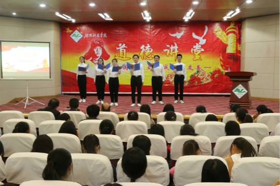 10月30日晚上,由校文明办主办、文法学院承办的第七十期道德讲堂在图教201举行。文法学院党政领导、教师代表和学生代表共300余人参加了此次活动。