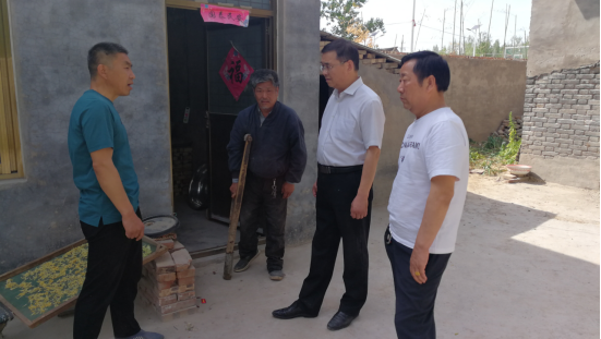 5月13日,文法学院党委书记王新宇、团委书记李可、正科级辅导员王占魁等赴封丘县黄陵镇闫庄村,看望慰问我院结对帮扶五保户杨中兵。