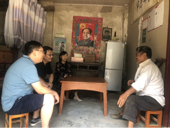 7月15日,文法学院党委书记王新宇,党委副书记邵帅,辅导员王占魁、张慧赴封丘县黄陵镇闫庄村,看望慰问我院结对帮扶五保户杨中兵。