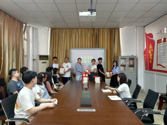 首先,李可介绍了本次捐赠图书均由文法学院2016级毕业生自愿捐赠,书籍主要有专业教科书、考研相关资料等。接着,老师们依次为贫困学生代表发放书籍。随后,贫困学生代表发表感言,表达了对学长学姐的感谢,并表示一定会充分利用这些书籍,在新学期里有计划、有目的地扎实开展学习,自立自强,勤勉刻苦,励志成才。最后,邵帅做总结发言:一、树立学习目标,明确奋斗方向;二、磨炼坚强品质,静心阅读书籍;三、常怀感恩之心,做爱心的传递者和有爱心的阅读者,让智慧得以共享,让书香传递下去。