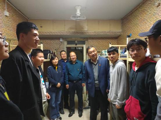为了进一步了解新生情况,及时给予新生关怀和帮助,10月10日晚,文法学院党委书记王新宇、党委副书记邵帅、副院长王振军、副院长张东旭,团委书记王占魁以及2020级辅导员张慧深入学生宿舍,走访看望2020级新同学。
