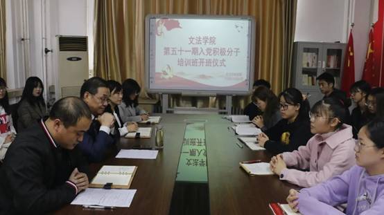 10月17日上午,文法学院在502会议室举行第五十一期入党积极分子党课培训。学院党委书记王新宇为入党积极分子作党课第一讲:《端正使命,领航青春》。他要求学员端正入党动机,增强党性修养,在青年时期扣好人生第一颗扣子。