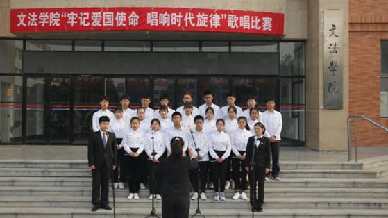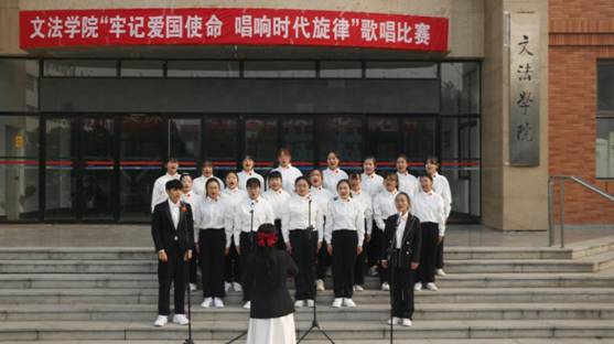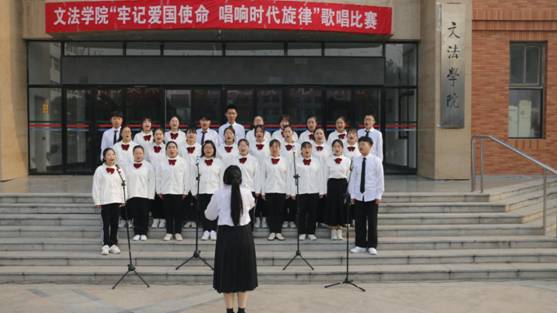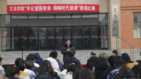 为了弘扬爱国主义精神,丰富学生课余生活,展现我院学生健康向上的精神风貌,11月29日,文法学院在学院办公楼前举办“牢记爱国使命唱响时代旋律”歌唱比赛。文法学院党委书记王新宇,党委副书记邵帅、副院长王振军、副院长张东旭,办公室主任苏喜庆、团委书记王占魁,2020级辅导员张慧以及2020级七个参赛班级参加了本次比赛。