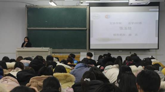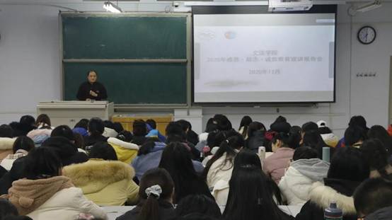 为做好我院资助工作,发挥学生“资助模范”榜样作用,提高我院学生感恩、诚信意识, 12月3日晚,文法学院在九合二教室举办2020年感恩励志诚信教育宣讲报告会,文法学院团委书记王占魁,团委副书记张慧及三百余名接受国家资助的学生参加此次报告会。