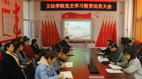 会上,王新宇传达了《河南科技学院党史学习教育工作方案》和校党委书记周志远在我校党史学习教育动员会上的讲话精神,邵帅同志传达了《文法学院党史学习教育工作方案》并对我院党史学习教育进行了具体的安排和部署。王新宇做总结讲话,对全体教工党员提出具体要求:一要提高政治站位,深刻认识党史学习教育的重大意义,自觉加强党史理论学习,做到学史明理、学史增信、学史崇德、学史力行;二要加强统筹谋划,科学安排各项工作举措,确保党史学习教育各项任务落到实处;三要结合学院专业优势和特点,积极开展特色活动,不断丰富学习内容和创新学习形式,营造浓厚的学党史氛围。