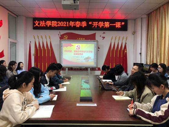 3月31日,文法学院院长周全星为文法学院2018级学生干部讲授2021年春季“开学第一课”。
