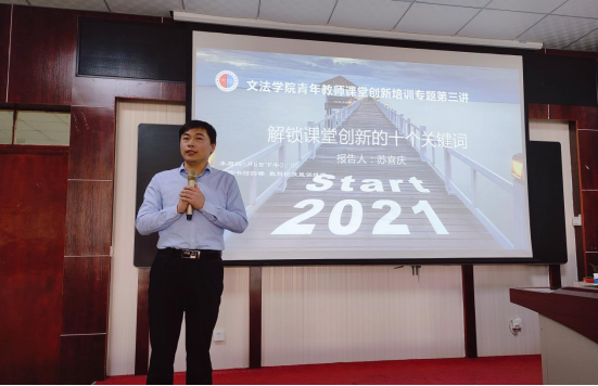 为深入贯彻落实全国、全省教育大会精神和省教育厅《关于加快建设高水平本科教育全面提面提高人才培养能力的实施意见》,切实推动高校课堂教学改革创新,引领文法学院教师落实立德树人根本任务,转变教育教学理念,创新教学内容,创新教学方法和教学手段,不断提升教育教学质量,并为举办2021年度文法学院教师课堂教学创新大赛创造氛围,我院近期开展了青年教师课堂创新培训系列讲座。