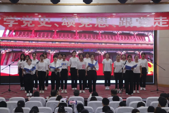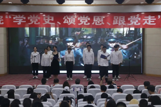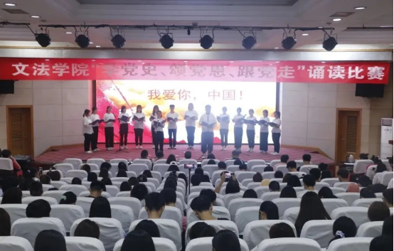 为庆祝中国共产党建党100周年,讴歌中华民族伟大复兴奋斗历程,教育引导学生坚定理想信念,厚植爱党爱国情怀,扎实推进党史学习教育往深里走、往心里走、往实里走,6月5日下午,文法学院在图教201举办“学党史、颂党恩、跟党走”诵读比赛。文法学院党委书记王新宇、院长周全星,党委副书记邵帅、副院长张东旭,团委书记王占魁,团委副书记张慧,辅导员范三妞以及学生代表300余人观看了本次比赛。