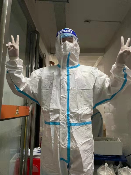 2021年7月至8月,疫情卷土重来,商丘市疫情尤为严重,多个地区成为中高风险地区。在征得父母同意的情况下,我积极参与市政府组织的疫情防控志愿者活动。在做好自身安全防护的情况下,于商丘市的一所高校隔离点担任志愿服务人员,负责一整栋楼的日常防疫工作,服务隔离人员。这里的隔离人员均来自于商丘市中风险地区(商丘市第一人民医院),由于医院房间紧张,所以被分流至高校进行隔离。在此期间,我每天都穿着防护服进行工作,二十四小时待命,没有固定的休息时间,很多时候都会持续作业、深夜作业。我在志愿工作中尽职尽责、努力认真,全力以赴做好日常工作,确保服务到位,防控到位,为打赢疫情防控狙击战贡献青春力量。