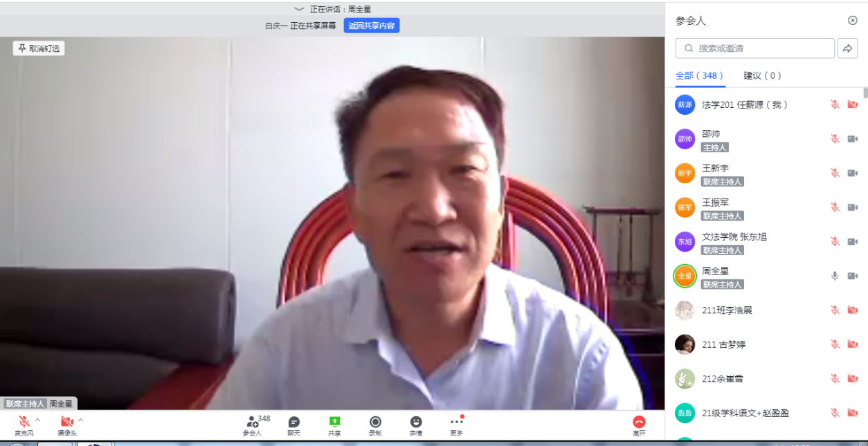 周全星以“爱学院,爱学科,爱专业,扬帆起航,成为专业人才”为主题,结合习近平总书记“七一”讲话精神、党史宣传教育以及“把灾难当教材 与祖国共成长”主题教育活动,将党史学习和学生成长联系起来,将防洪抗疫和学校学院发展联系起来,带领学生重温党史,讲述学院故事。此外,他围绕学校、学院、学科、专业学习等方面为新生们详细介绍了学校历史、学院概况、学科建设和专业前景。最后,周全星对新生今后的学习和生活提出了三点要求:一是加强政治理论学习,提升政治站位,不断提高思想政治素养;二是加强专业课学习,夯实专业基础,提高专业能力;三是加强体育锻炼,提高身体素质,练就强健体魄。
