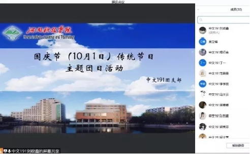主题团日庆佳节。我院组织各团支部召开国庆节主题团日活动。活动中,各团支部成员积极分享自己熟知的革命英雄故事和防疫抗洪先进事迹,进一步增强了对党和国家的情感认同和价值认同,深化爱国情感。