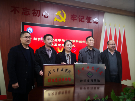 在新乡学院附属中学的签约仪式上,校长杨红霞详细介绍了学校“五年三步走”的跨越式发展历程,解读了“做雅慧教育,臻幸福人生”的办学理念,杨红霞表示在前期合作基础上,河南科技学院在新乡学院附中建立研究生、本科生实习基地将开创双方“校校合作,联合培养,无缝对接,资源共享,优势互补,互惠共赢”的新局面,副校长李彦、沈敬萍分别介绍了新乡学院附中的实习管理制度、专业团队、日常管理流程、实习考核评价方式、实习环境和安全管理制度。许光日和周全星表示要以签约和授牌仪式为契机,积极探索双方协同育人、深度合作的新途径和新方法,推进教学理论成果的转化,在实践中提升研究生、本科生的教育教学能力,培养更多具有深厚师德情怀、强烈从教意愿的高素质、高水平中学骨干教师。